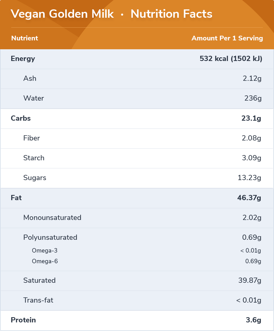 Notes on the vegan golden milk recipe